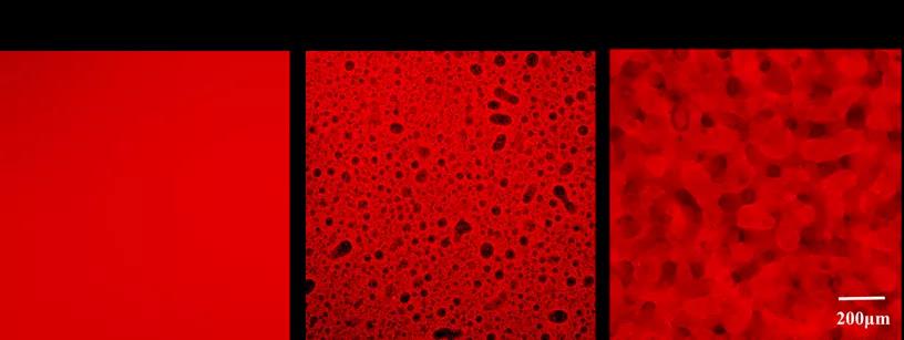 圖4BKNM-GM-PR系列多孔GleMA水凝膠表面細胞培養熒光照片(紅色為熒光GelMA)