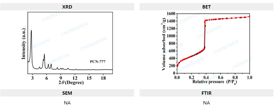 1) PCN-777的剛性結(jié)構(gòu)是良好的催化劑載體,儲氣材料和吸附材料