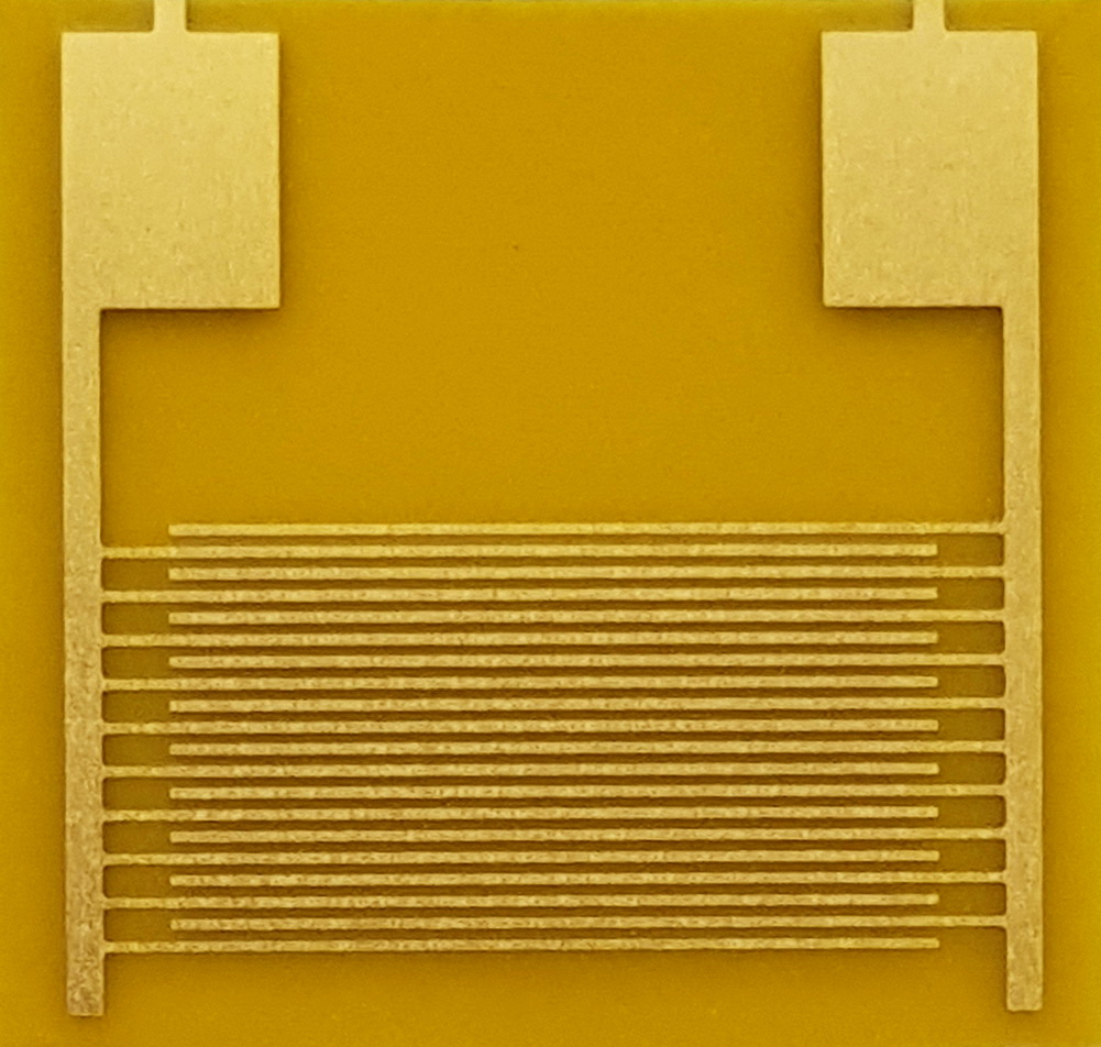 柔性PI叉指電極IDE醫(yī)療氣體生物濕度傳感器智能穿戴1.電極基材:聚酰亞胺(PI),厚度13um,外形尺寸10mm*10mm。