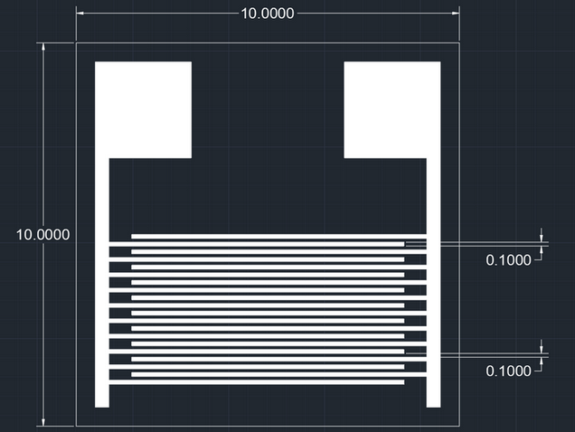 我們提供各種叉指電極,包括不同形狀,不同尺寸,不同線寬線距,不同基材(氧化鋁陶瓷,PI/PET柔性材料,單晶硅),不同工藝(厚膜工藝,DPC工藝,MEMS 工藝)。