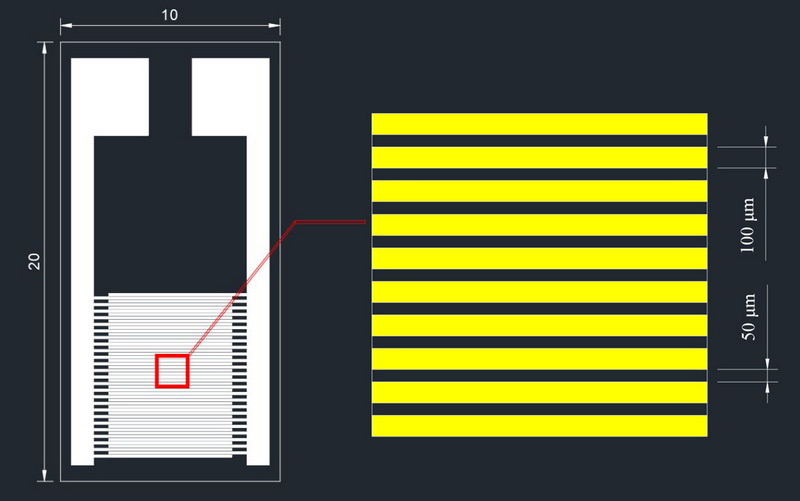 我們提供各種叉指電極,包括不同形狀,不同尺寸,不同線寬線距,不同基材(氧化鋁陶瓷,PI/PET柔性材料,單晶硅),不同工藝(厚膜工藝,DPC工藝,MEMS工藝)。