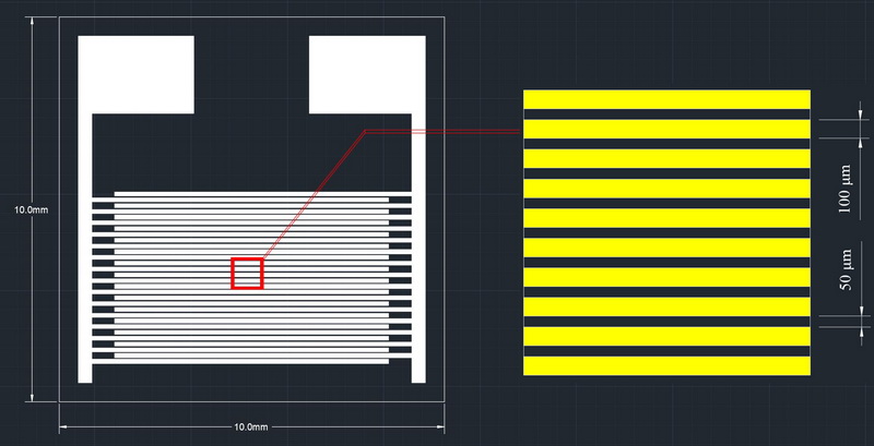 我們提供各種叉指電極,包括不同形狀,不同尺寸,不同線寬線距,不同基材(氧化鋁陶瓷,PI/PET柔性材料,單晶硅),不同工藝(厚膜工藝,DPC工藝,MEMS工藝)。