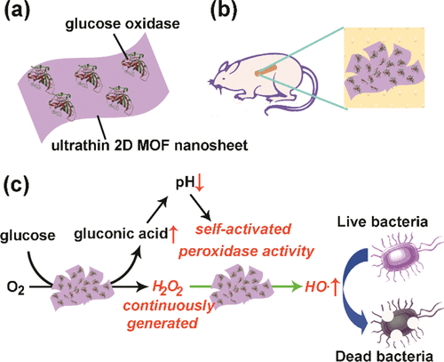 Two-Dimensional Metal–Organic Framework/Enzyme Hybrid Nanocatalyst as a Benign and Self-Activated Cascade Reagent for in Vivo Wound Healing