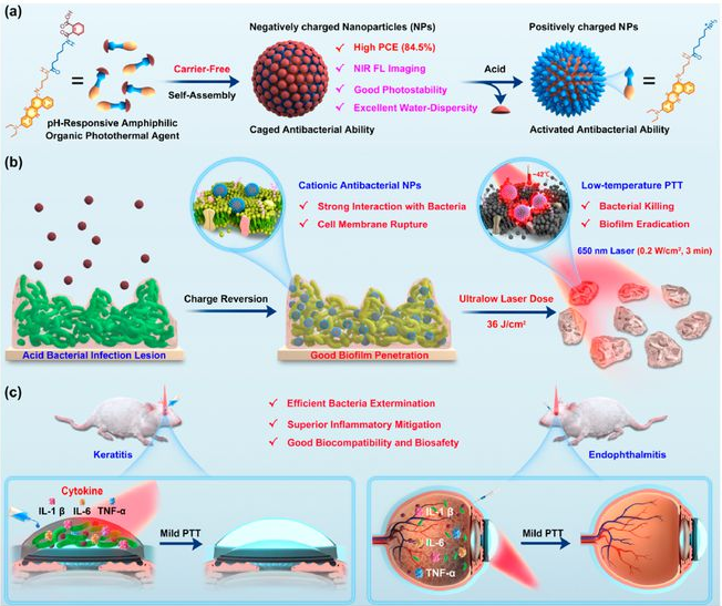 pH-Activatable Organic Nanoparticles for Efficient Low-Temperature Photothermal Therapy of Ocular Bacterial Infection