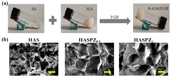 其他說明:密封狀態(tài)下保質(zhì)期半年【主要優(yōu)勢】通過將聚六亞甲基雙胍(PHMB)負載到 ZIF-8 納米粒子的框架中來獲得 pH 響應性抗菌 P-ZIF(ZIF:沸石咪唑酯框架)。這將使 PHMB 能夠在受感染傷口的弱酸環(huán)境中釋放。為了解決燒傷感染問題,將 P-ZIF 納米粒子通過硼酸酯鍵加載到由海藻酸鈉 (SA) 和 3-氨基苯硼酸修飾的類人膠原蛋白 (H-A) 制成的水凝膠系統(tǒng)中