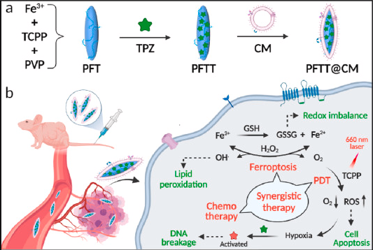 組成:聚乙烯吡咯烷酮+ Fe-TCPP +癌細(xì)胞膜(CM)