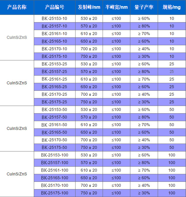 蘇州北科納米科技有限公司生產(chǎn)的油溶性CuInS/ZnS量子點產(chǎn)品是以CuInS為核心,ZnS為殼層,表面由疏水配體包裹的核/殼型熒光納米材料,平均的量子產(chǎn)率為60%,儲存時應(yīng)避免陽光直射,4度密封暗處保存,可以為客戶訂制生產(chǎn)530nm~750nm任一波長不同克數(shù)的產(chǎn)品。本產(chǎn)品具有粒徑均一,吸收光譜寬泛,發(fā)射光譜對稱,熒光強度高而穩(wěn)定等特點,可應(yīng)用于太陽能電池、發(fā)光器件與生物熒光標記等領(lǐng)域。