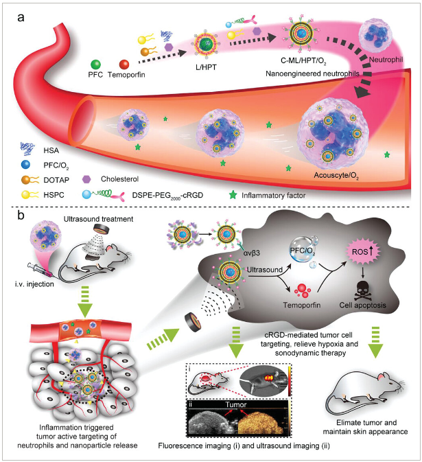 其他說明:密封狀態下保質期半年【主要優勢】采用納米工程方法將定制的脂質體與中性粒細胞結合,構建了攜氧聲敏劑細胞Acouscyte/O2,并將其用于對癌癥的可視化診斷和治療