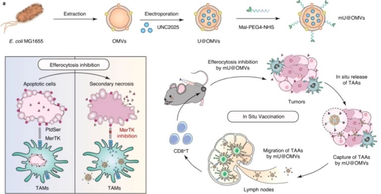 Bacterial outer membrane vesicle based versatile nanosystem boosts the efferocytosis blockade triggered tumor-specific immunity