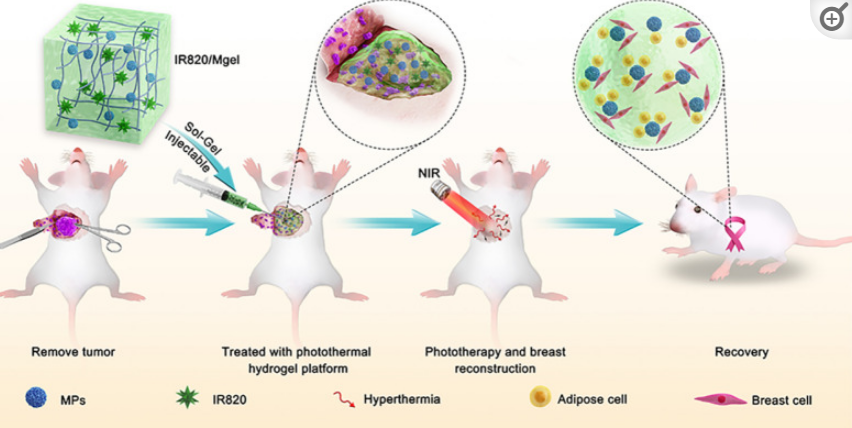 其他說明:密封狀態下保質期半年【主要優勢】以IR820提供光熱效應殺滅殘留腫瘤細胞,以水凝膠提供乳房重建平臺,從而實現乳腺癌術后利用雙功能水凝膠平臺的治療方法