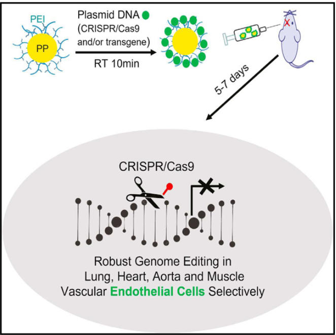 Robust genome editing in adult vascular endothelium by nanoparticle delivery of CRISPR-Cas9 plasmid DNA文章鏈接: