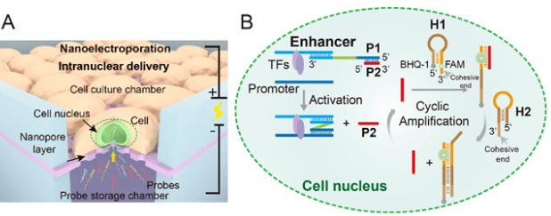 Sensitive Interrogation of Enhancer Activity in Living Cells on a Nanoelectroporation-Probing Platform