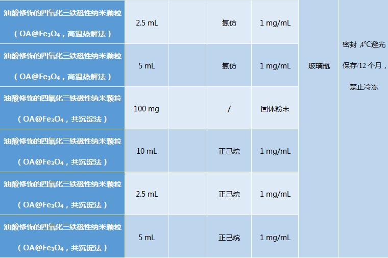 Oleic acid modified ferroferric oxide magnetic nanoparticles