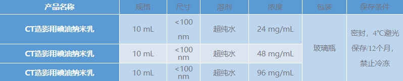 Suzhou Beike Nano Technology Co., Ltd. provides high-quality lipiodol nanoemulsion for CT imaging. It is a milky white transparent liquid dispersed in pure water. It has been filtered and sterilized with a 0.22 micron filter membrane. The size and iodine concentration are adjustable within a certain range, the CT imaging contrast enhancement effect is good, low nephrotoxicity, safety, environmental protection and pollution-free, with good dispersibility, good stability, can be used for mouse liver and spleen, tumor CT imaging, etc.