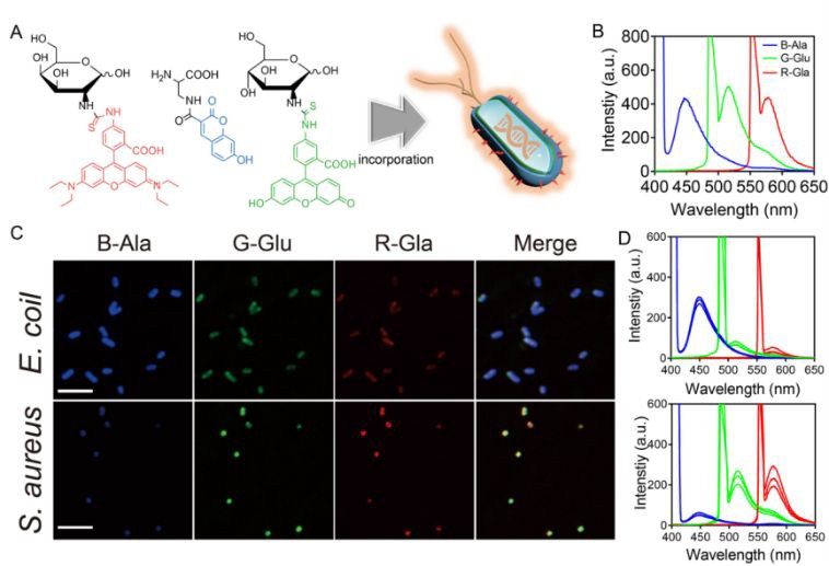 Other instructions: shelf life of half a year in sealed state [Main advantages] After incubation with microorganisms, these fluorescent metabolite derivatives can be combined with bacteria to form a unique true color "fingerprint" for different species and groups. The study also constructed a portable spectrometer that automatically performs colorimetric analysis with smartphones to easily identify different bacterial species and microbiomes.