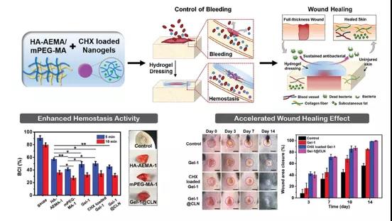 圖3. 透明質(zhì)酸基納米復(fù)合水凝膠利用透明質(zhì)酸酶在感染傷口時(shí)的過(guò)度表達(dá)。