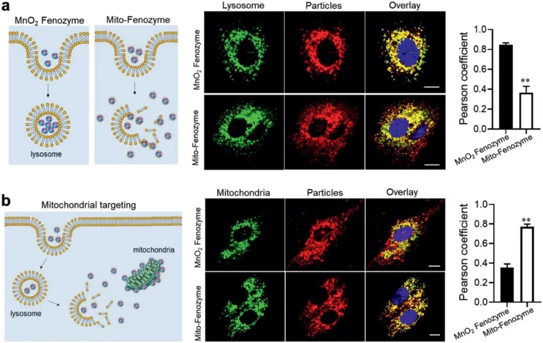 (1)這些納米酶以鐵蛋白重鏈基蛋白為酶支架,以金屬納米顆粒為酶活性中心,其具有超氧化物歧化酶和類過氧化氫酶的活性,并能通過克服多種生物屏障來靶向線粒體。