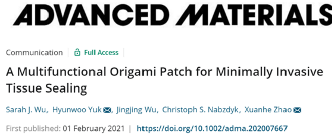 麻省理工趙選賀《AM》:微創(chuàng)組織密封的多功能折紙貼片抗菌水凝膠