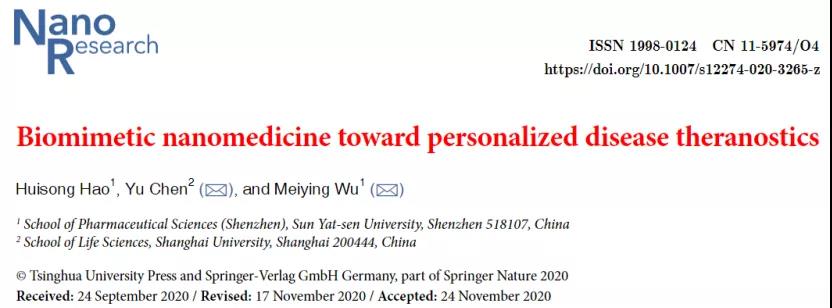 吳玫穎/陳雨Nano Research:仿生納米醫學,為個性化疾病診療帶來新方向!