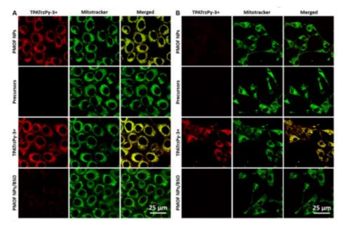 (2)研究表明,原位合成的PSs具有靶向線粒體的能力,可在光照射下有效地實(shí)現(xiàn)腫瘤細(xì)胞特異性消融,并且這種在癌細(xì)胞中產(chǎn)生的高特異性PSs也使其治療過程更加安全。
