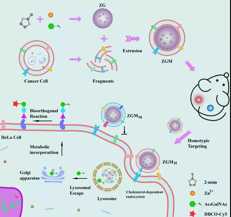 有鑒于此,中科院長春應化所曲曉剛研究員構建了一種癌細胞膜偽裝金屬有機骨架(MOFs)-疊氮糖,并將其用于在體內實現具有癌癥細胞選擇性的MGL。