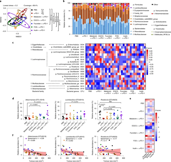 圖 3:菊粉加 α-PD-1 處理促進了不同的腸道微生物群落。
