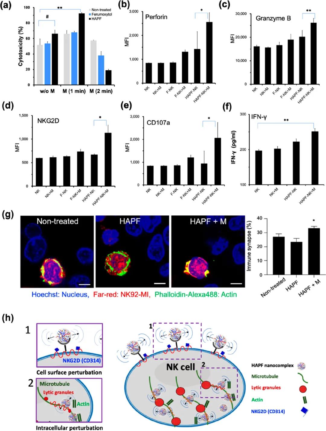 于此,美國西北大學Dong-Hyun Kim利用臨床可用的材料(透明質酸,魚精蛋白和納米氧化鐵;HAPF)開發了一種磁性納米復合物,并將其用于標記NK細胞。