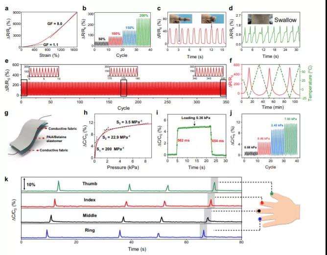 這項工作為設計具有類皮膚的復雜感官和機械性能的魯棒材料鋪平了道路,并有望激發(fā)一系列仿生材料在傳感器、可穿戴電子產(chǎn)品、智能紡織品、人機接口等方面的各種應用。