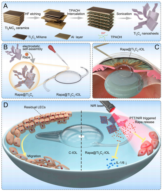(圖4 Rapa@Ti3C2-IOL植入體內(nèi)預(yù)防PCO)