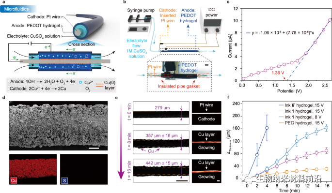 圖 6:PEDOT 導電水凝膠作為電化學微流體裝置。