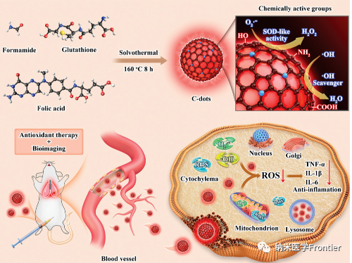 本研究提供了一種新型的紅光碳點納米材料,為生物成像和抗氧化治療提供了一種新的策略,并且具有制備簡單、成本低廉、生物相容性好等優點。